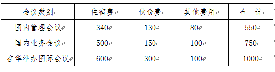 第十条 会议费综合定额控制部分,各项费用之间可以调剂使用。具体定额标准如下: