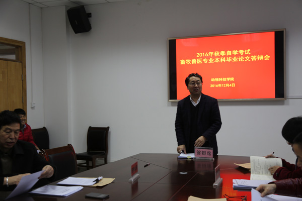 12月4日,小黄书 在104会议室举行2016年秋季自学考试畜牧兽医专业本科毕业论文答辩会,39名学生参加了毕业论文答辩。答辩主席、院长姚军虎教授,答辩委员于三科教授、孙世铎教授、王爱华教授、胡建宏教授、辛亚平副教授、孙小琴副教授等参加了答辩会。
