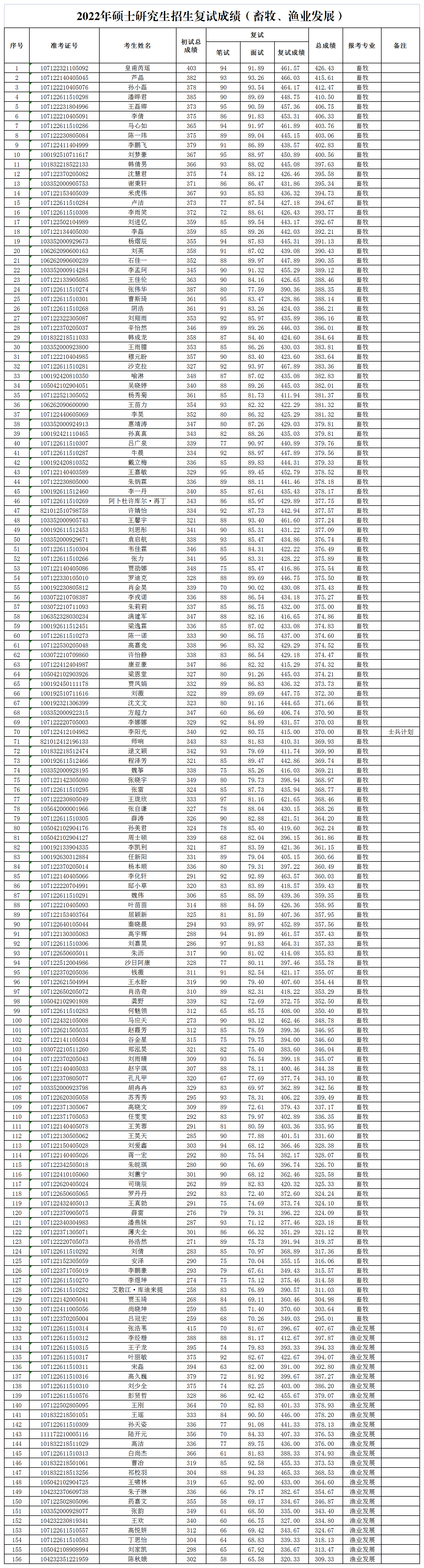 根据《小黄书 关于做好2022年硕士研究生招生录取工作的通知》《小黄书 关于做好2022年硕士研究生招生复试录取工作的通知》等文件精神,小黄书 通过专业课笔试、面试等复试环节考核,经小黄书 研究生招生工作领导小组复核,现将小黄书 2022年畜牧、渔业发展领域专业学位硕士研究生招生复试成绩予以公示(见附件)。
