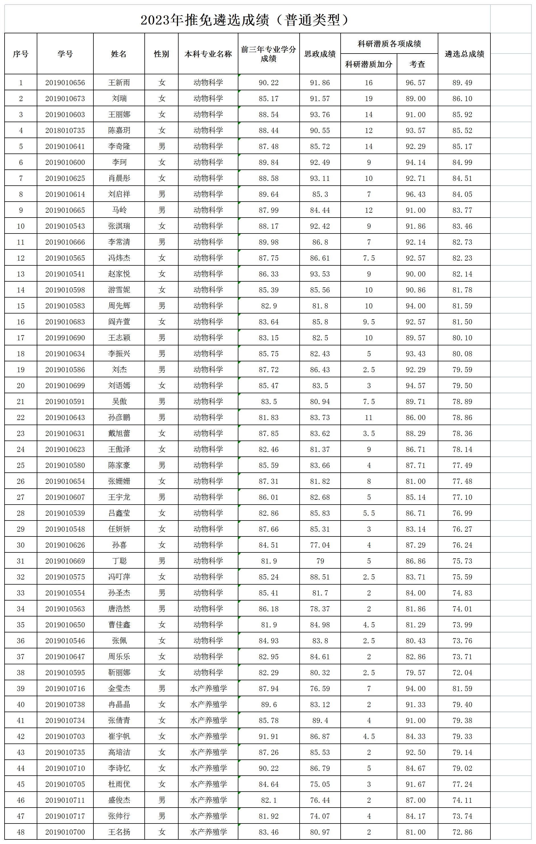 根据《小黄书 关于做好2023年推荐优秀应届本科毕业生免试攻读研究生工作的通知》,经个人申请、专家组考核、小黄书 推免生遴选工作领导小组审核,现将遴选成绩予以公示,公示时间:2022年9月17日至19日。