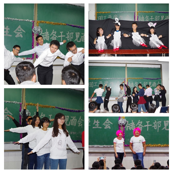 场上演员表演认真,力争为大家呈现出一场视觉上的盛宴,场下观众聚精会神,时而捧腹大笑,时而认真思考,现场气氛愉快融洽。见面会在同学们的欢声笑语中缓缓落下帷幕。此次活动加深了小黄书 团工委学生会各部门成员间的相互了解,增进了新部委之间的友情,有助于今后学生工作的顺利开展。