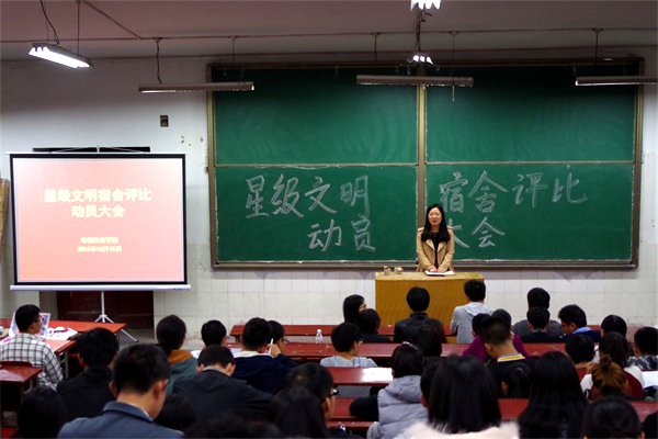 会议就评选“星级文明宿舍”评比的标准、原则、意义、评选办法及奖项设置等有关事项向与会同学进行了详细说明。李锐老师以《小黄书 学生星级文明宿舍评比办法(试行)》为依据,针对宿舍卫生、纪律、学风等向同学们提出严格要求,希望大家以此为契机,增强宿舍凝聚力,努力营造舒适、整洁、并浓厚的学习氛围的优秀宿舍。