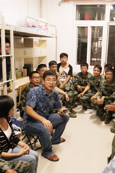 活动前期,由代班宣布交流会主题后,同学们都表示看完阅兵式到现在,激动的心情久久未能平复。在与同学们交流过程中,辅导员邓昌海老师提出,抗日战争已过去70周年,但历史的警示仍在,和平安定的环境是世界人民所共同期盼的,今天的阅兵式不仅是对历史的铭记,对先烈的缅怀,更重要的是展现全国人民珍爱和平、开创未来的决心。随后,15级的新生们也用不同的方式分享了自己的感悟。