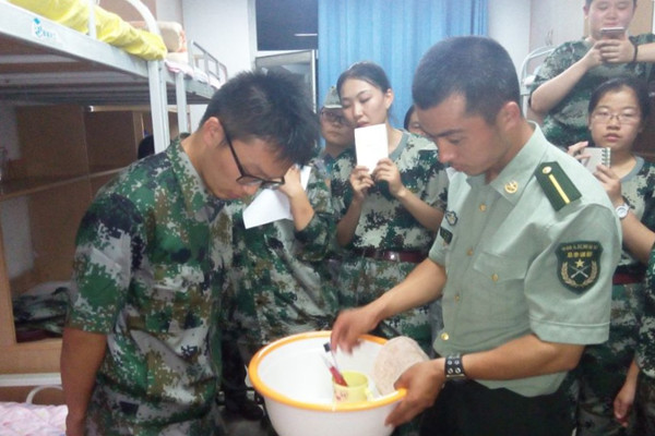 教官首先根据新生宿舍内务整理状况进行了针对性的点评,并向同学们明确内务整理标准,要求同学们高标准、严要求的进行内务整理,在日常生活中也绝不允许有丝毫懈怠。接下来,教官亲自示范叠被子,洗漱工具的摆放、毛巾晾挂等方面的技巧。同学们不禁被教官标准的姿势及娴熟的技术所深深折服,感到钦佩不已。最后,同学们根据实际情况就内务整理问题向教官积极提问,教官一一耐心作答。