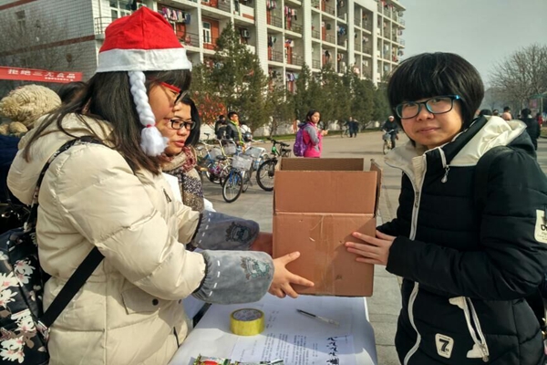 24日中午,活动组织人员在活动地点集合完毕后,迅速有序的布置活动场地,齐心协力将前一天晚上收集到的新年祝福卡片贴在画板上制成展板,供来往同学观看欣赏,向其传播传递关爱奉献爱心的思想。同时,工作人员还向过往同学发放介绍活动宣传单,积极鼓舞发动更多人向福利院内的孤寡老人和留守儿童捐送圣诞礼物,为他们带去真挚的问候。此次活动引起了师生们的强烈反响,来往同学们纷纷积极响应。同时,小黄书 也向热情配合此次活动,积极参与其中同学们表示了诚挚的感谢之情,并为其发放了精心准备的小礼物,活动持续近一个小时后落下帷幕。