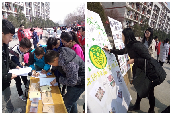 3月15日中午,小黄书 纪检部在西超雕塑举行了以“明辨真假,学会维权”为主题的消费者权益宣传活动。