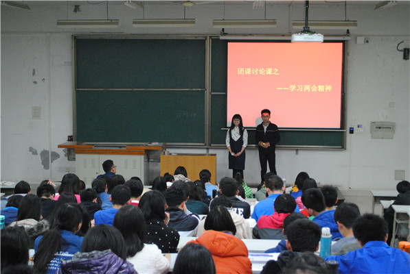 动科153班张禹同学发言,他表示,人大会议和政协会议不仅是我国政治上的盛会,也是我国加快发展,关注民生,健全和完善社会主义制度的重要途径和手段。作为一名在校的大学生,通过学习两会精神,从而了解国际国内形势,认清大局,明辨是非,站对立场,同时,作为学生干部,我们应该在日常的生活工作学习中自觉践行两会精神,自觉履行学生干部应尽的义务,积极带动同学参与到两会精神的学习、讨论和实践中去。
