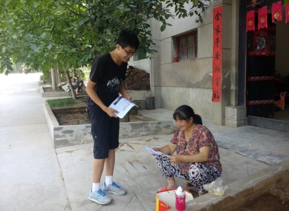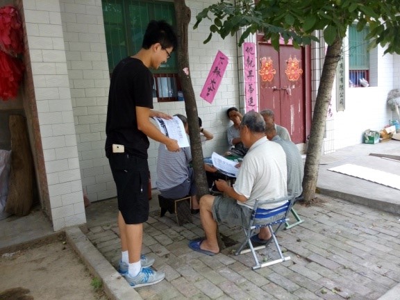 志愿者一行人来到村里,以传单和辅助讲解等形式为村民大概介绍两学一做相关内容,促进党的思想深入群众。通过走访调查,志愿者们了解到有很多老人对于党的方针非常关注而且较为熟悉,让志愿者们深受感染。其中一位老爷爷是老党员,看到听到志愿者的宣传讲解,他对西农志愿者们深入群众为村民宣讲党的方针和政策感到非常的开心和欣慰。颇有意义的是,老人还向我们讲解了一些关于昔日改革开放艰苦奋斗的历史情节,志愿者们受益匪浅。