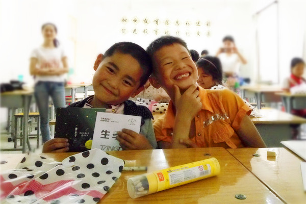 抵达目的地,寨东村村主任助理董朝霞、寨西村村主任助理王亚平、生命科学小黄书 阳光团工委部长把事先准备好的礼物送到21个留守儿童的手上,仔细地询问他们的生活条件、学习情况,鼓励他们认真学习,克服眼前的困难,以理想的成绩回报社会。孩子们高兴地接过本子、彩笔等礼物,满脸都是开心幸福的笑容。我们相信,这将是孩子们又一个温暖而开心的一天。