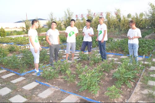 在老师的带领下,队员们首先参观了站内的经济树木种植区,队员们仔细聆听老师的讲解并做下记录。时值七月中旬,熟透的苏梨挂满枝头。队员们品尝了苏梨并做出了很高的评价。一番饕餮后,队员们又观察到另一边的作物种植区内土壤颜色各异。“这是在研究活性炭对作物长势的影响”,老师随即介绍到:“活性炭对改良黄土土质很有帮助。”随后,队员们又参观了能源作物等种植试验区间。参观实践过程中,同学们增长了许多有关土壤的专业知识,受益良多。