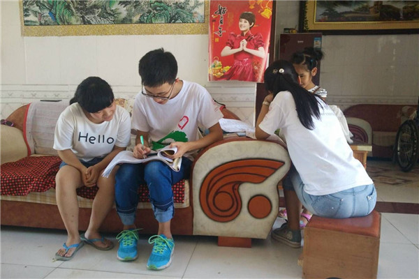 在猕猴桃产业调研之余,服务队组织队员给小学初中的学生解答作业中的疑问,并为他们进行一定的心理指导和人生观价值观的引导,与孩子们亲切交谈他们在生活中的困惑,以及对未来的憧憬。同时,队员们借此机会给孩子们生活的指引,帮助其树立正确的人生观与价值观。