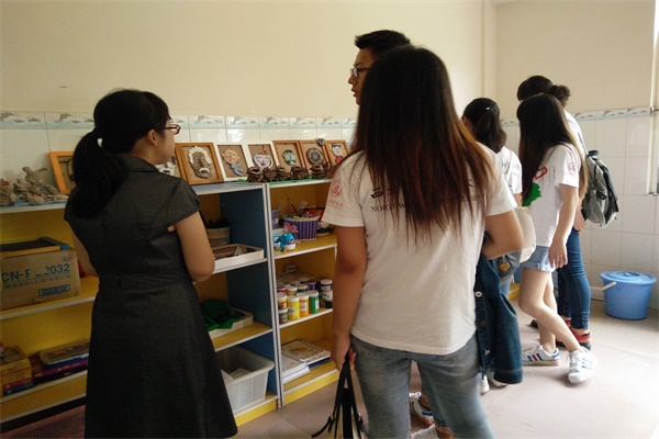 7月25日上午,队伍们来到了成都市儿童福利院,福利院的行政人员对队伍的到来表示了热烈的欢迎。随后,负责人带领队员们参观了福利院。在此过程中队员们福利院的人员组成、儿童数量、建设理念等内容有了基本了解,通过工作人员的讲解,队员们了解到该福利院主要为0-18周岁孤儿、弃婴和无家可归的残疾儿童提供护理、医疗、康复、特殊教育、回归安置等一体福利服务。在养育儿童中有95%以上为残疾儿童,针对智力尚好的儿童,福利院为他们开设了音乐、舞蹈、陶艺、插画等课程。为了使孩子们更好地生活,院里实行“家文化”体制,所有的孩子都以兄弟姐妹相称,而保育员则是他们的爸爸妈妈。同时为了能准确地了解孩子的智力发育情况,院里也是有着一套完善智力检测系统与仪器设备,孩子们在这里生活的很快乐。在参观福利院的过程中,队员们切身感受到了福利院“家文化”体制下孩子们受到的关爱与温暖。