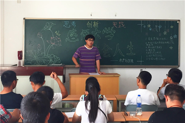 活动前期,各班班委精心筹划,认真组织,形式多样。其中,动科163班采取了小型演讲会的形式开展,严肃活泼,在团支书的带动下,每一位同学都顺利完成了自己精心准备的演讲。动科164班则采取了观影交流的形式,不仅以ppt的形式展现了每一位同学的感悟,更以一个“永不言弃”的视频激励了在场的所有人。在水产161班的组生过程中,校组织部李福星同学对小黄书 严肃活泼的气氛给予了高度地评价,并提出了一些宝贵的建议,同时对同学们的思想工作进行了正确的指导。部分班级还邀请了班主任参与到团组织生活中,这不仅有利于班级向心力的形成,更有助于同学们的思想道德建设,动科163班支书杨堤贻表示,大学的第一次组生带给她许多感悟,感受到班级大家庭带来了温暖,在未来的四年生活中将会更加努力,实现自己的大学梦。
