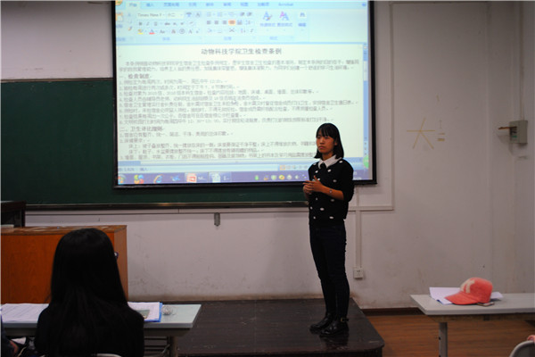 会议第三项,生活部部长侯静瑶对15、16级宿舍卫生管理方面的条例进行了详细的解释,希望同学们在平时保持好宿舍及个人卫生,养成良好的生活习惯,展现当代大学生精神风貌,做合格西农人,做优秀大学生。同时对近期的创意宿舍大赛进行了介绍,此次活动以“创新从‘家’开始,梦想由心出发”为主题,让同学们互相了解、互相沟通、相互合作,增强宿舍内部的凝聚力,营造温馨的宿舍氛围,为以后宿舍内部和谐的生活奠定良好的感情基础。