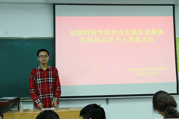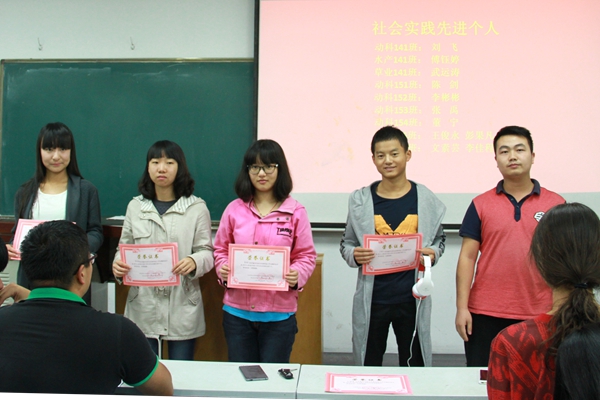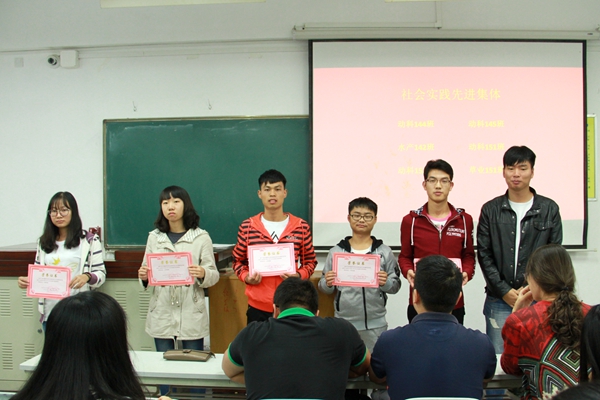 会议开始,社会实践部部长王健宇宣布了2015-2016年社会实践先进集体的获奖名单,团工委书记张士军为获“社会实践先进集体”班级颁奖;辅导员张涛为获得“社会实践标兵”颁发荣誉证书;2015届学生会副主席杨涛为获得“社会实践先进个人”颁奖。会场内响起一阵又一阵热烈的掌声,同学们纷纷向获奖的同学表示衷心的祝贺。