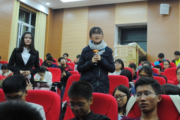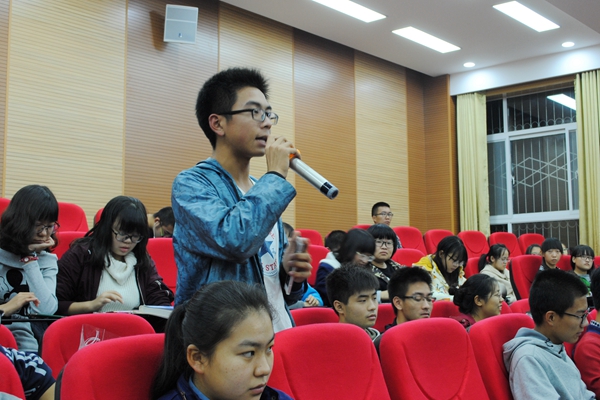 本次会议,赴汉中精准扶贫、赴四川丝路文化、赴秦巴山区精准扶贫、赴陕西正大集团蛋鸡示范场、赴安康水产示范站、赴川西平原基层群众对中国梦的认知情况调研服务队六支优秀队伍以PPT的形式向我们展示了每支队伍的三下乡成果,用大量的照片向我们展示了实践活动的内容和工作环境。从活动申请、调研形式、经费发放等方面讲述了实践活动的具体流程。赴四川丝路文化调研对代表马锦荣同学用一小段视频向我们展示了她们团队在成都开心、幸福的调研生活。现场同学们兴趣浓厚,积极与各队代表互动交流。