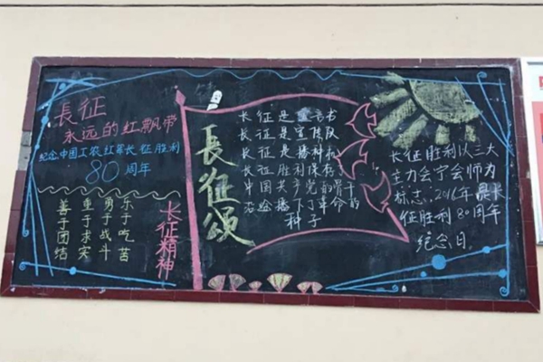 活动当天,同学们早早来到了小黄书 实践基地官村,受到了村主任的热烈欢迎。在村主任和两位村助的带领下,同学们走访了官村的村委会及部分村户,了解到了官村近期各项基础建设工作和初步成果。走访过后,同学们忆苦思甜,体悟不怕苦不怕累的长征精神,义务帮助村委会进行了卫生清扫,受到了村干部们的一致好评。同时,为了在广大村民中间进一步弘扬长征精神,同学们办了一期以“践行长征精神”为主题的黑板报,希望借此为官村的文化建设贡献一份力量。