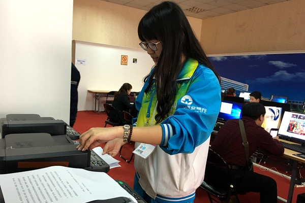 在组委会宣传部小黄书的志愿者,每天制作许多的记者证,不停地记者接待,给记者们耐心的答疑解惑,帮助工作人员为记者们准备所需要的材料,虽然很累,但是,也很幸福,学到了很多,收获很多。