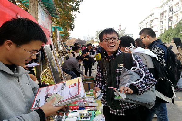为发扬中华民族勤俭节约的传统美德,实现校区内资源传递、物尽其用,同时达到鼓励同学们理性消费的目的。小黄书 于11月14、15日中午在北校区西雕举行了 “新旧互易,温暖共享”的二手旧货互易活动。