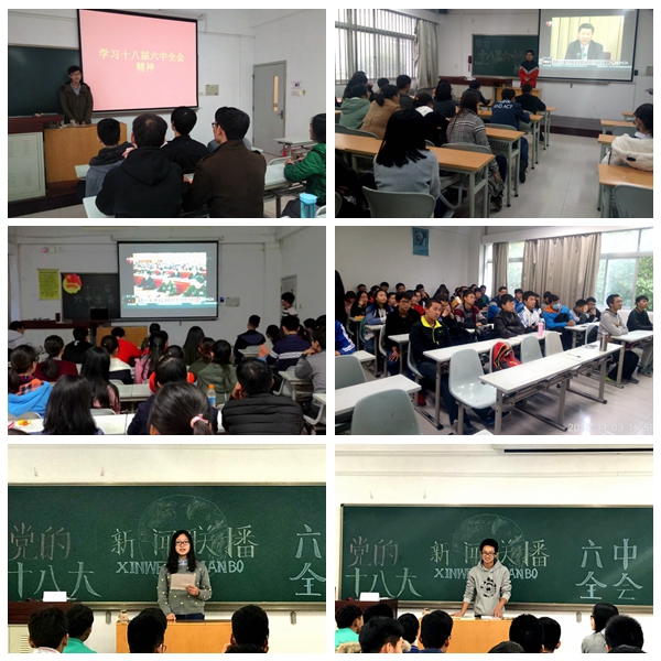 为使学生进一步增强学生对十八届六中全会精神的认识,小黄书 于10月31日至11月4日在北校区八号教学楼举办了以“学习十八届六中全会精神”为主题的组织生活。14级、15级、16级同学积极参与并学习了六中全会精神。