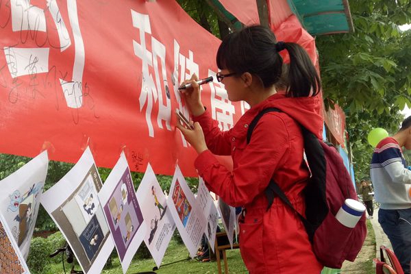 活动现场,心理咨询中心的老师们全程提供温馨的咨询答疑服务,同学们就生活中遇到的点滴问题前来积极咨询学习。许多同学表示,在与老师的交谈中不仅解决了心中困惑已久的问题,还放飞了心灵。在小黄书 活动展示处,同学们纷纷前来签字,写下自己的美好心愿及内心的感受,并积极观览“心灵漫展”绘画作品,互相交流心理漫画中所反应的点滴现象在当代大学生日常生活的映射。不少同学表示在漫画中得到了共鸣,被幽默诙谐的夸张手法逗乐的同时,也感受到了智慧的启迪和生活的哲理,这是一种很有趣的解压方法。