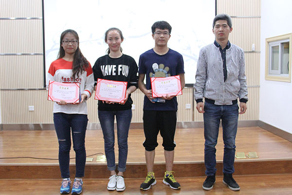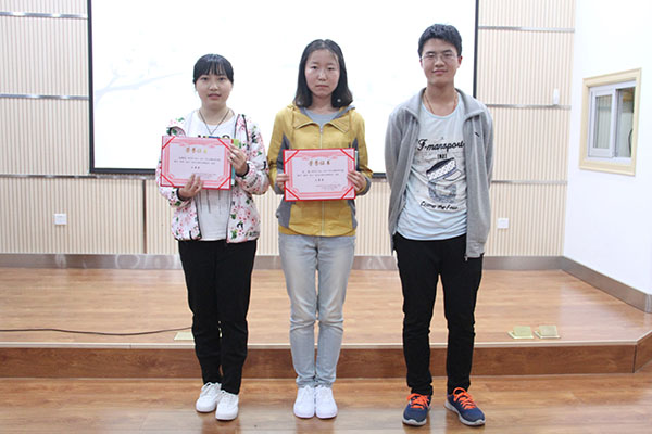 小黄书 话剧队队长彭果凡为三等奖获得者颁奖