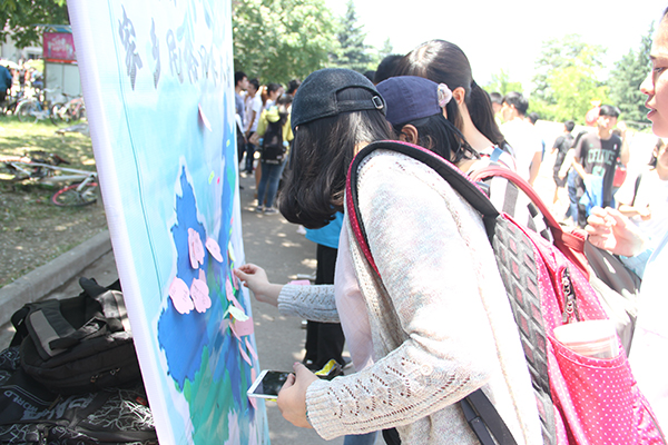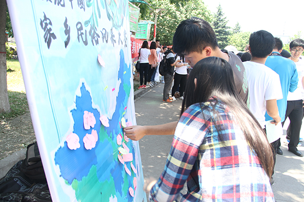 本次活动旨在为给学生提供展示家乡风采的平台,寄情家乡美好的机会。活动前期准备充分,为后期宣传工作的顺利展开打下了良好的基础。活动当天,创意独特的中国地图海报吸引来往学生频频驻足,同学们纷纷在便利贴上写下对家乡的寄语,并标注好自己的名字与家乡,再将其黏贴在地图中家乡的位置上。参与学生络绎不绝,字里行间都浓缩着同学们对家乡深切的爱,一位前来参加活动的同学表示:“看到家乡就果断跑过来了,我对家乡的爱难割难舍,很感谢小黄书 给我这次‘表白’家乡的机会。” 小黄书 文艺部部委白泽宇发表感言:“看到大家提笔寄语,我想要立刻回到家乡,看一下它的秀丽风景,它的一草一木,这种血脉相连的感觉我毕生难忘。”寄情家乡的同时,小黄书 学生干部还为每位参与活动的同学送上了精美的礼品,现场氛围十分热烈。