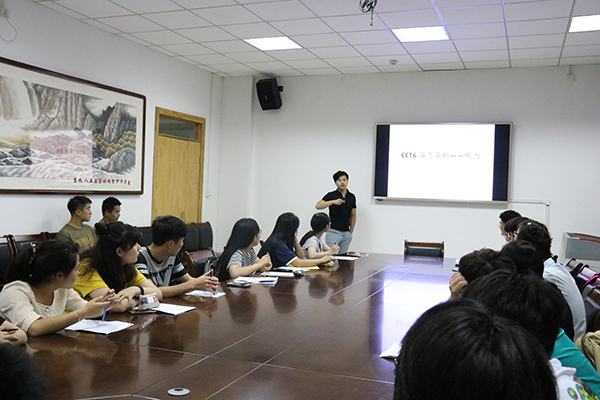 乐老师以六级的卷面分值为基础,着重对分值较大的听力做出分析。他对听力的三种题型依次剖析细节,并传授听力练习的相关技巧。乐老师博闻强识、风趣幽默,在传授经验的同时,更是将自己整理的复习资料与同学们分享,大家在领会其精髓的同时,也极大地增强了对六级考试的信心。