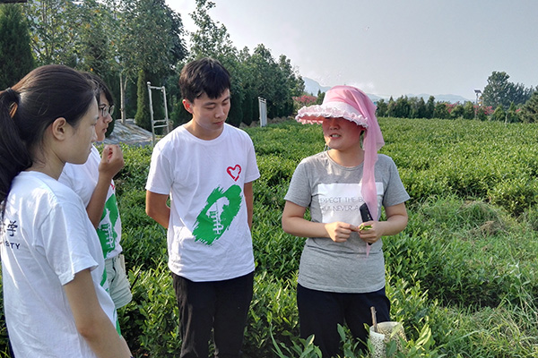活动伊始,队员们在市区以及巨峰镇对不同身份的居民进行了关于绿茶知识的调查,并于之后组队来到了淞晨茶叶基地,由淞晨茶叶员工婧姐作为导游,向队员们介绍了山东日照茶叶发展的历史。队员们了解到,日照绿茶是在1966年南茶北引成功后才发展起来的,正是由于谭启龙,牟步善等老一辈共产党员艰苦奋斗,不怕困难,才将“南茶北引”做的如此成功。同时,婧姐还为队员们介绍了制作绿茶的工序——采茶、摊晾、杀青、揉捻、烘干、分拣。她表示:“现代机械制茶的工序大致相似,但随着机械化水平的提高,机械生产效率大大提高,传统工艺渐渐地退出商业舞台。”