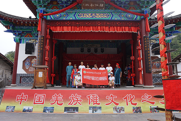 傩戏——古时用于天子所命的庄严祭祀,后逐渐发展至民间,成为去疫、酬神的仪式。最初的戏剧便是由傩戏发展而来,因此傩戏又被称为戏剧活化石。带着极大的兴趣,小黄书 “赴宁强县文化艺术调研服务队”全体成员驱车前往羌族傩戏文化之乡青木川,并拜访傩戏演绎者郭大爷,从而了解傩戏的起源与发展。听闻来访者是调研傩戏的大学生,郭老开心不已,连忙招呼自己的徒弟和女婿为我们表演。因为时间问题,郭老选取傩戏中最为经典的“上刀山”与“下火海”。
