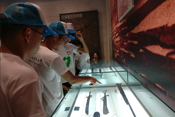 作为黄麻起义等革命事件的发起地,红安涌现出众多英勇的革命先烈,对此,队员们前往红安烈士陵园将军墓缅怀为国牺牲的先烈,学习革命精神,同时,通过对红色遗迹的参观和相关文献资料的学习,深入了解先辈的壮烈事迹,感受其为国奉献的高贵精神。在活动过程中,淅沥的小雨渲染着悲重的氛围,怀着对先烈的敬佩之心,队长曾鑫不禁赋诗一首:“巍巍大别山,英雄出红安。二百余将军,英烈十四万。萍水遇良朋,携友共与瞻。再拾英雄志,宇内崛轩辕。”