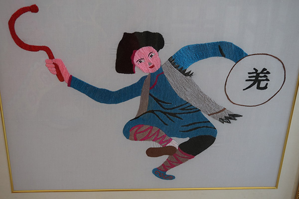初见王小琴,队员们都大吃一惊,本以为这古老技艺的传承人应是一位白发苍苍的老妇人,却未曾想到如此年轻的女子。在王小琴的带领下,队员们参观了她及徒弟们的刺绣作品。这些作品远看和一般的刺绣区别不大,但仔细观察才发现,羌绣使用的线远不及其他绣线细,听王小琴讲,古羌族原本就是居住在大山里的民族,制线工艺自然不及城市,但尽管使用粗线,凭着绣女们精湛的技艺,也能将一幅幅作品绣的淋漓尽致。在王小琴为我们拿作品的时候,队员们注意到她右手的部分手指已长出老茧,她说:“我从七岁开始就跟着母亲学习羌绣,一直到现在,整整二十年,现在我有幸成为羌绣的传承人,我想将这门古老的技艺传承下去,我想办厂,大规模生产羌绣,想带领和我一样喜欢羌绣的女同胞们脱贫致富!”听着王小琴的巾帼脱贫梦,大家不免心生敬意。