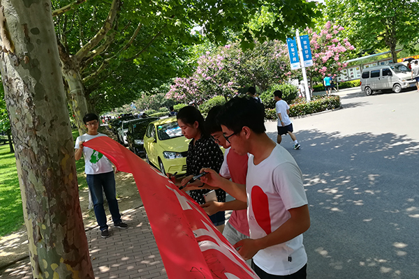 “我们从西安不远千里坐车25个小时来到这里,就是为了获得你们的支持,你们的支持,是我们最大的鼓励……绿色丝路,我们在行动,希望你们也能献出自己的力量,让我们当代大学生变得更有担当!”上午在山东科技大学的宣传活动中。志愿者余侃一番声情并茂的演讲,迅速获得了同学们的支持,尽管山东科技大学正处于小学期期间,但队伍还是在不到半个小时的时间里收集了近百个签名,发出了近百份宣传单。