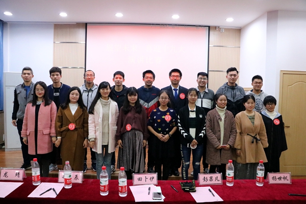 万山磅礴看主峰,十九大来咏心声。金秋十月,举世瞩目的中国共产党第十九次全国代表大会隆重召开,青春献礼十九大,不忘初心跟党走,小黄书 于10月30日晚在动科楼107会议室举办了“展望新未来,学习十九大”演讲比赛。小黄书 团工委书记闫颢芯、研究生会主席郑辰、往届口才之星等八人组成评审团,与同学们一同聆听激扬震撼的演讲比赛。