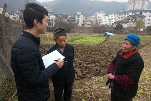 此次调研从镇巴县城所在地泾洋镇开始。据了解,县城内教育、医疗条件等体系较为完备,交通便利,有210国道贯穿全县。此次调研主要面向县内经商人员,周边农村村民和环卫工人。在调研中,队员们了解到县城周边以山地为主,缺少小麦等农作物的大面积种植,当地农户主要以蔬菜种植为主,周边农户缺乏青壮年劳动力,家中老年人为主要劳动力。该地区冬季雨雪天气时因路面积雪导致交通不便,夏季山体滑坡情况严重等气候条件导致农产品滞销;农户缺乏技术指导;山区冬季河流断流,灌溉问题不好解决。家内主要经济来源为年轻人外出务工和政府补助。当地的一位老爷爷说,现在城市条件好了,国家保障足了,我们的日子越来越好过了。老爷爷还给志愿者们讲述了当年开山修路的故事,队员们深受感动,脚下的路都是先辈们用汗水换来的,子子辈辈会在这条路上走的更好。