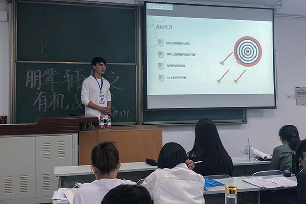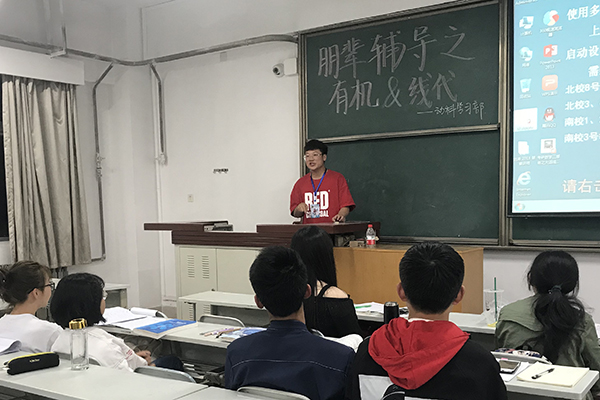 结课考试将近,为帮助17级同学们摆脱考前恐慌,巩固学科知识,由小黄书 学习部主办的“朋辈辅导”系列活动第一次朋辈课堂于5月1日在8号教学楼8608教室开课了。水产162班张黎和刘涛同学担任本次讲师,为大一的同学们讲解了线性代数与有机化学相关知识及考点。