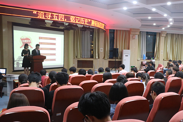 为了让同学们牢记历史,深刻体会到五四运动的精神内核,值此五四运动99周年之际,小黄书 联合水建小黄书 、外语系于5月4日晚在外语楼二楼报告厅举办了“追寻五四运动,奏响青春乐章”的历史知识趣味竞赛活动。水建小黄书 学生会主席李培铨、外语系学生会主席屠菡琳和小黄书 团工委副书记龙靖出席了本次竞赛活动。