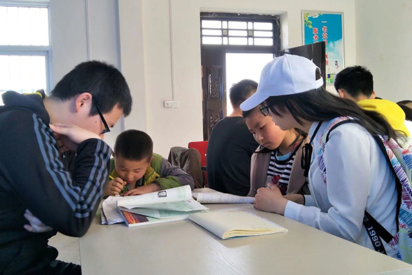 志愿者们正在给孩子们辅导课业