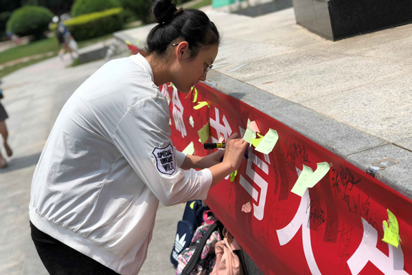 本次活动通过小黄书 微信平台和公众号进行前期宣传,让同学们充分了解此次活动,吸引了大批同学前来参与。小黄书 组织部干事在西雕开展横幅签名活动,同学们积极踊跃的在便利贴上写下自己对未来的规划和畅想,表达自己对未来的期望,并在横幅上签下了自己的名字。每位签名的同学都得到了小礼品,现场气氛十分火热。活动结束后,大家在西雕合影留念。