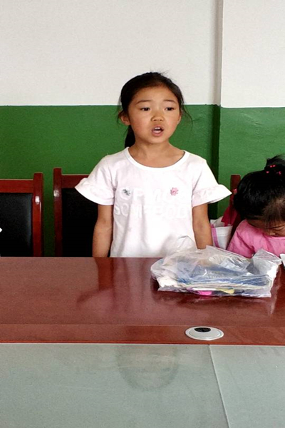 才艺展示以击鼓传花的形式开展,花落谁家,谁就要为大家表演节目,同时志愿者也会给表演者精心准备小礼品。孩子们跃跃欲试,有人讲故事,栩栩如生;有人唱歌,婉转动听;也有人背诵古诗,抑扬顿挫;更有令人印象深刻的小女孩的英文演讲令大家赞不绝口齐声鼓掌。活动进一步拉近了老师与同学们、同学们与同学们之间的距离,大家越来越熟悉,一些内向而不敢在大家面前展示自己的孩子在志愿者们的鼓励和气氛的带动下,也鼓起了勇气站上舞台。这时候,志愿者告诉孩子们:“展现自我,是一种勇气,更是一种自信。”孩子们会心地笑了,不仅仅是因为得到了小礼品,更多的是对自己的满意和成长的喜悦。