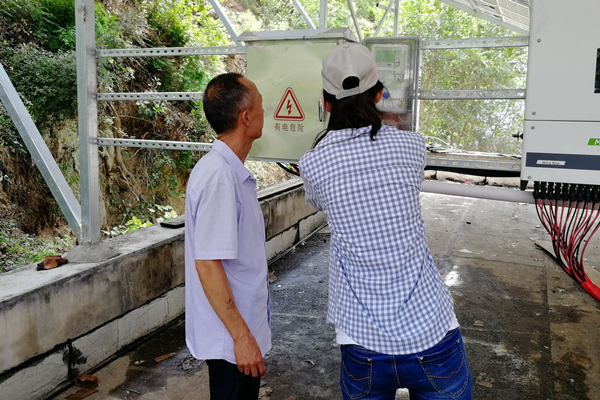 在洞沟村村委会干部的热情接待下,调研团队参观了洞沟村村委会楼顶的光伏组件。村支书介绍道:“在这样的发电点就可以看到发电量以及一些基本数据。当然,发电站已连接了互联网,手机上也能很方便地查看基本数据,一度电三毛六,每个月发出的电都有电表记录,村里靠这个电站一年能收入7到8万元,这些钱用来发展产业,做扶贫工作。”村支书说起刚刚建好的光伏发电站,脸上洋溢着喜悦和自豪。光伏发电既是对清洁可持续能源的利用,又能为村里带来更多收益,村民对此项目十分满意。洞沟村光伏电站的建设不仅直接带动了当地经济的发展,而且为分布式光伏发电的大面积推广积累了宝贵的经验,可谓是一举两得之策。