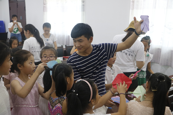 7月18日,小黄书 赴杨凌新集村支教服务队如往日一样,早早到达支教地点,为今日课程做准备。活动中,队员们给孩子们播放音乐剧开阔孩子们的视野,培养其艺术鉴赏能力,并在手工课上教孩子们折风车信封,锻炼他们的思维和动手能力。