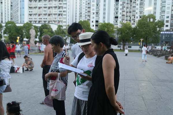 为了深入了解歙县居民对徽派文化的态度及掌握情况,并通过实践强化大学生学以致用的能力,7月23日,小黄书 赴黄山徽文化考察宣讲调研宣讲队来到歙县张曙音乐广场,发放“关于徽派传统文化”的调查问卷并就问卷情况普及徽派知识。