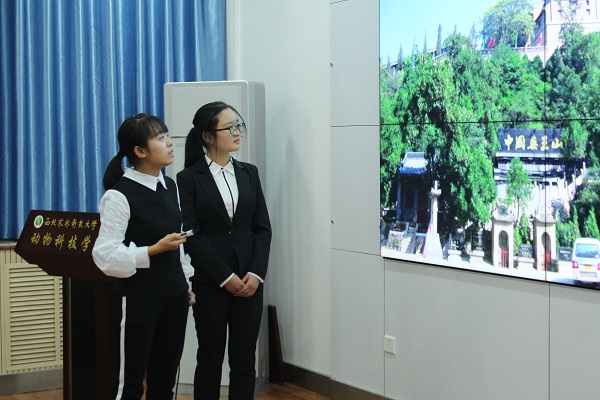 “一玉口中国,一瓦顶成家。”精彩激烈的比赛在唯美的文句中拉开了序幕。动科1705班向炜萱介绍了万水千山的重庆,制作精良的视频一经播放,顿时吸引了观众和评委的眼球,神奇的轻轨穿楼,美味的火锅,庄严的红岩革命纪念馆让大家深深地体会到了重庆的美丽。同样以视频引人注目的任亚轩则将目光聚焦在了家乡的红色历史上,让大家体会到河北平山历史气息的同时也欣赏到了当地的美丽风光。动科1801班集体作为为唯一一支一般为单位参加比赛的队伍,别开生面,用各地的方言令大家捧腹大笑,更用丰富的图片使大家一饱眼福。比赛过程中,其他选手也是各尽其才,为大家展示了祖国各地迥然不同的美食与风光。