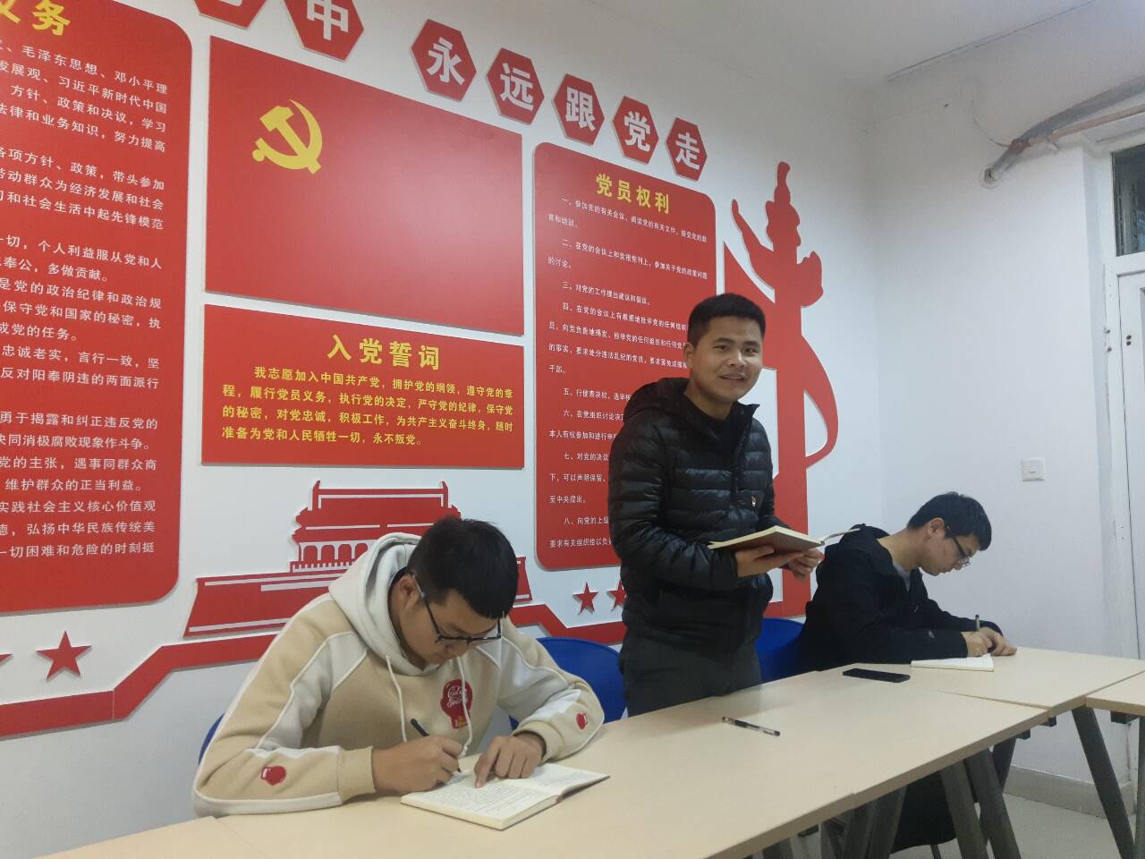 11月9日,小黄书 大学生第三党支部第一党小组在党员活动室组织党员政治理论学习会,共同观看纪录片《不朽的马克思》。小组组长孙鹏越主持本次学习会。