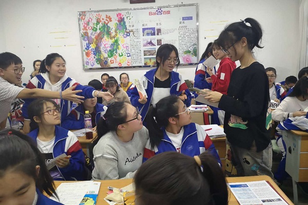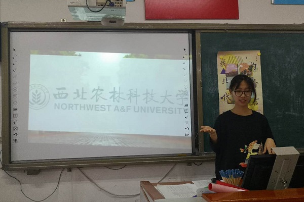 除了在会场内进行演说外,队员们更深入班级,进行招生宣传,并和高三学生进行交流、互动,解答学生们的疑惑。队长给在场学生发放了了西农特产——彩色锅巴,其他队员分发了制作精美的宣传册和明信片,受到在场学生的一致好评。之后,队长结合PPT全面地介绍了小黄书 的优势。“经国本,解民生,尚科学”,看到这九字被学生记在本子上,队员们心中十分感动。经过一下午的紧张工作,本次大型宣讲会圆满落幕。
