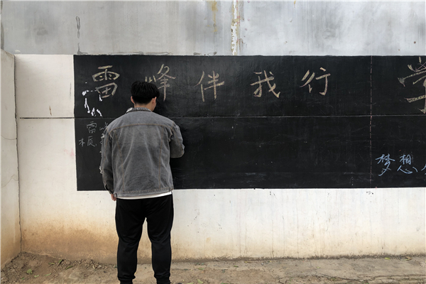 雷锋精神一直是党和国家积极宣传倡导的精神价值观,同时强国梦作为最近人民关注的热点,国家和人民都对此抱有极大的关注。4月3日,借着雷锋月的背景以及人民对强国梦的强烈反响,张家岗村村主任助理张程和陈影灿前往张家岗村,以绘画和板报的形式为村民们传递“雷锋精神”,构建“强国梦”。