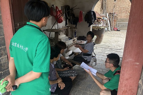 随后,队员们走访调查了多家当地村民,从他们那里得知:黑东村村民主要以种植小麦、玉米、黄花菜等为主,与南社村不同的是,这里有专门的黄花菜收购商上门收购,解决了村民黄花菜滞销的问题,然而,由于今年干旱情况较为严重,庄稼歉收,使得村民每亩地收入由800多元锐减至500元不到,旱涝灾害,成为了阻碍村民发展致富的一大因素。