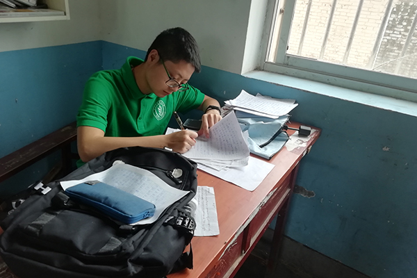 志愿者们在批改作业