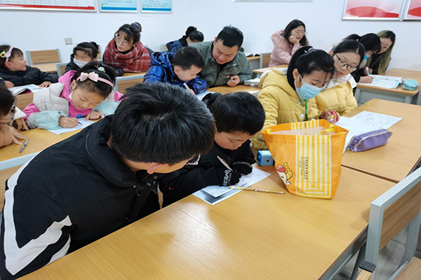 志愿者辅导孩子作业